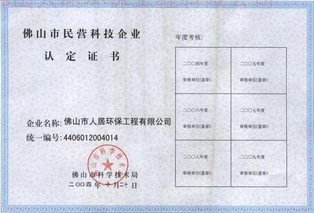 2、1項(xiàng)“佛山市民營(yíng)科技企業(yè)認(rèn)定證書”
