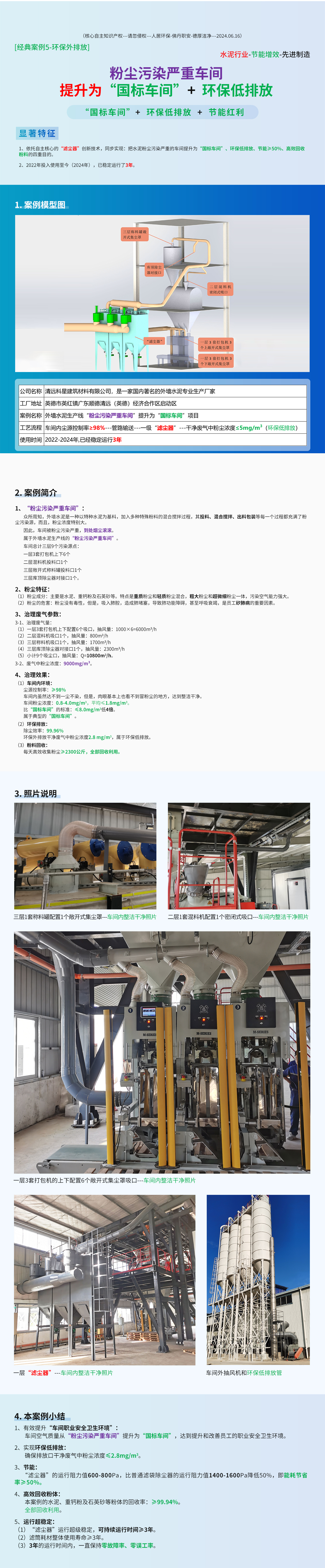 5:水泥行業(yè)-環(huán)保外排放---粉塵污染嚴重的“重塵車間”升級為“國標車間”+環(huán)保低排放案例簡介